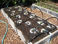 Anyway, I like the ideal of using tulle for a cover because you would more easily be able to see what's going on under the row cover (like, "is the cabbage ready to harvest or is it ready to burst," which they'll do in the summer sun; OR, "are slugs eating the cabbage plants?" Important sorts of things like that.) and also provide a better air flow while keeping the creepy-crawlies out. So that's on my list of things-to-do. I have the fabric, just haven't made the cover yet, but wanted to let you know about this idea.